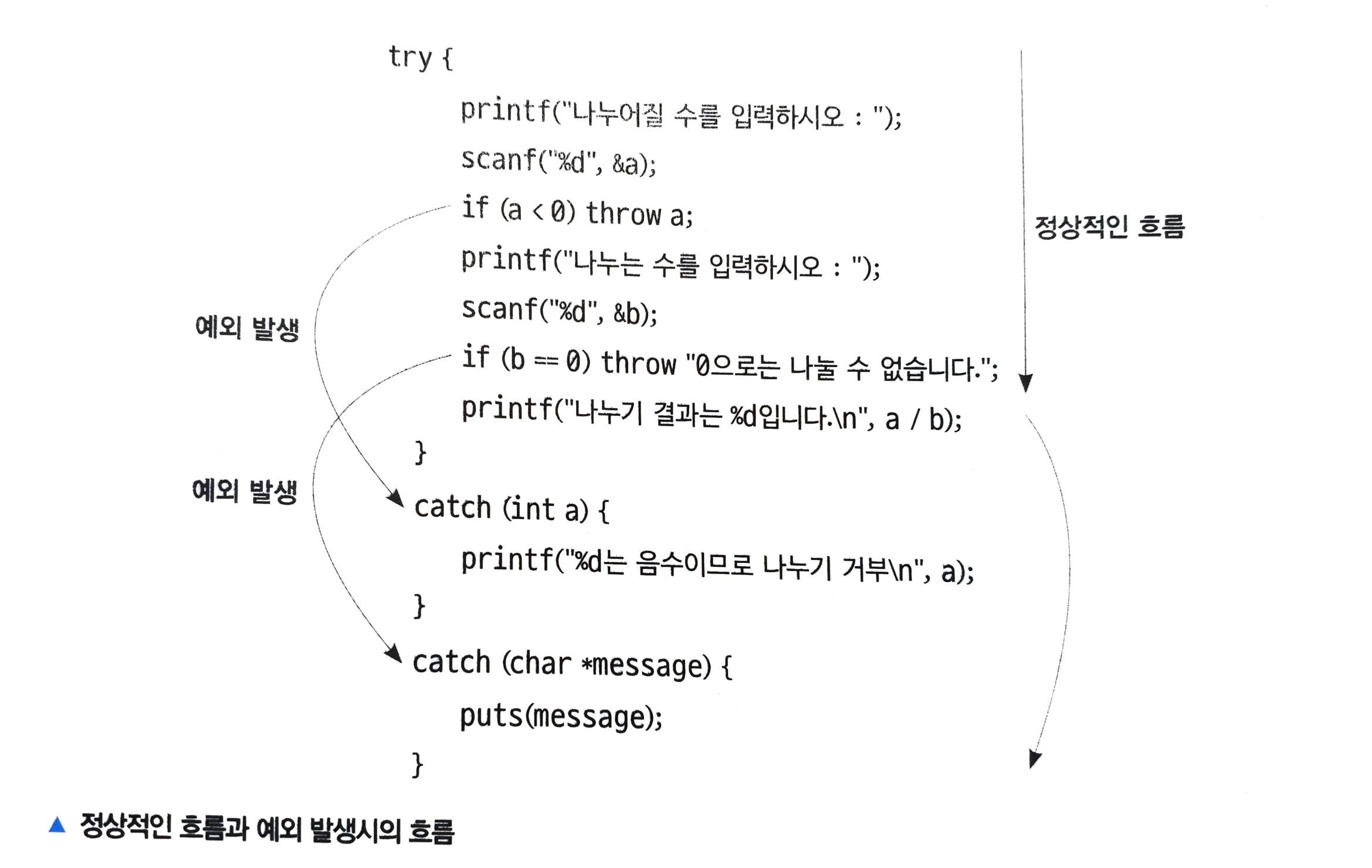 if (b == 0) throw "0으로는 나눌 수 없습니다.";